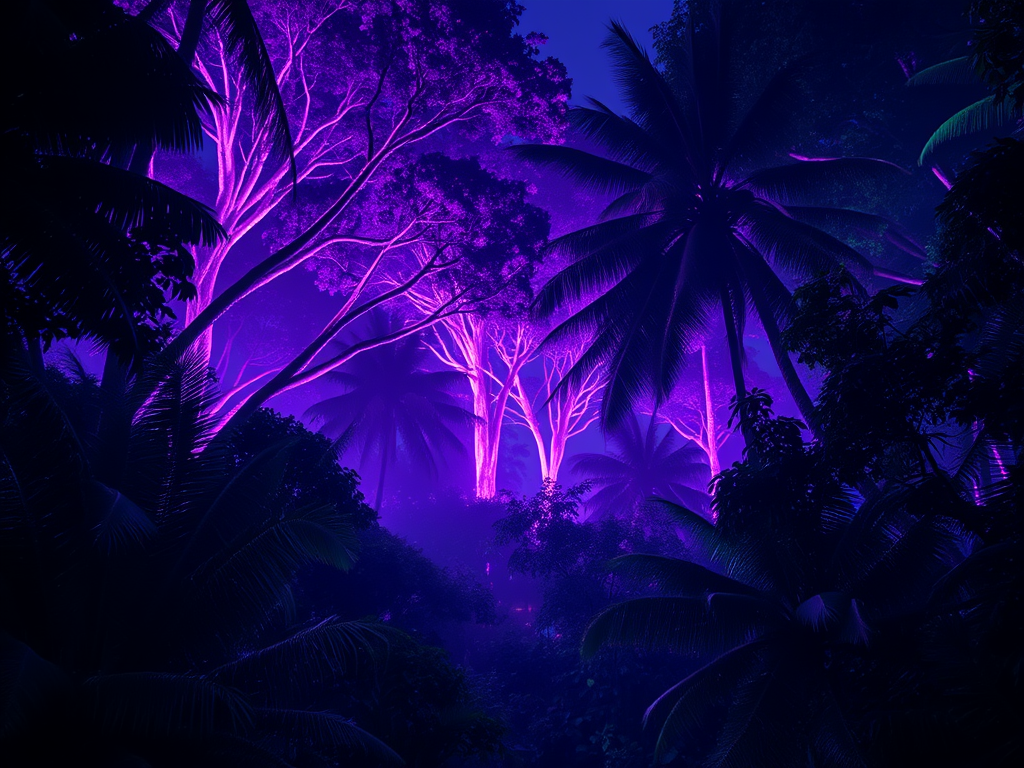 A soft, bioluminescent purple shimmered across their trunks. It was unlike anything she had ever seen. Her torchlight felt intrusive now, so she switched it off. The natural glow was enough. Entranced, she walked deeper into the trail, the eerie beauty swallowing her whole.